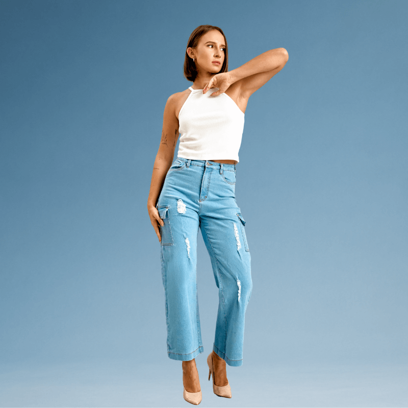 Light Blue Denim Cargo Pant