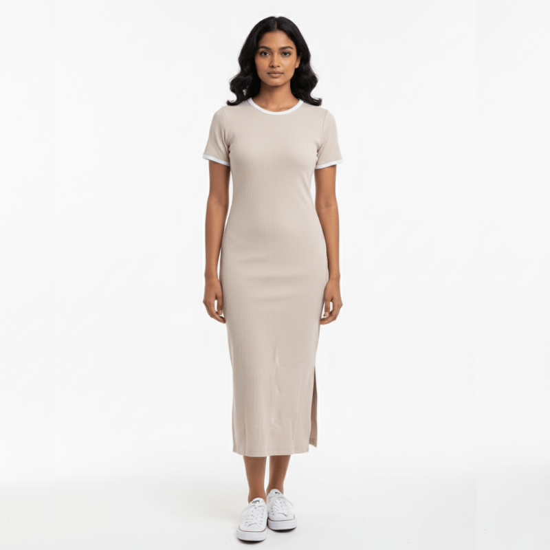 Beige Rib Midi Dress