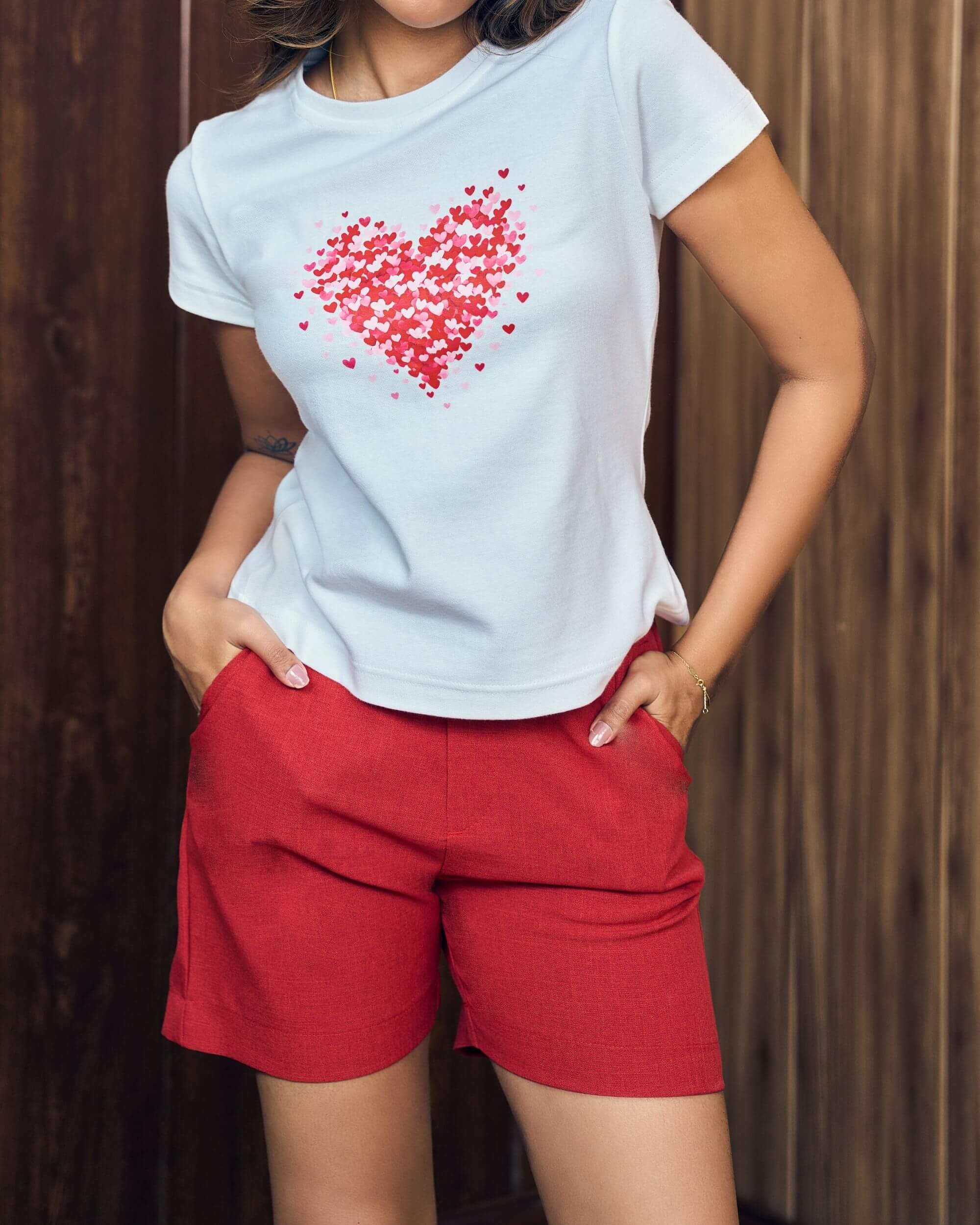 Featuring a clean front finish and elasticated back waistband for comfort, this piece is easy to style with casual tops or Valentine statement tees.